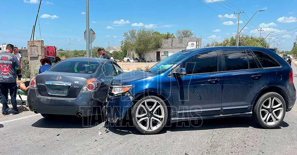 Nuevo Laredo, Tamaulipas. — Una mujer resultó lesionada luego de que su vehículo, un Nissan Altima, chocó contra una camioneta Ford Edge en la colonia El Progreso, al norponiente de Nuevo Laredo.
