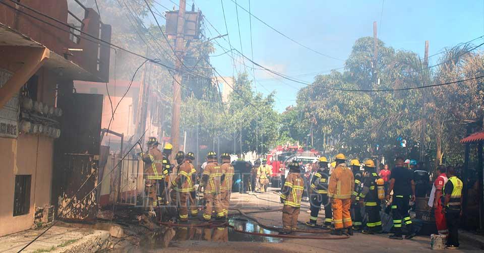 El siniestro ocurrió en el predio ubicado en calle Juan Aldama casi esquina con Matamoros, a donde arribaron varias motobombas con elementos de Bomberos y Protección Civil para atender la contingencia.
