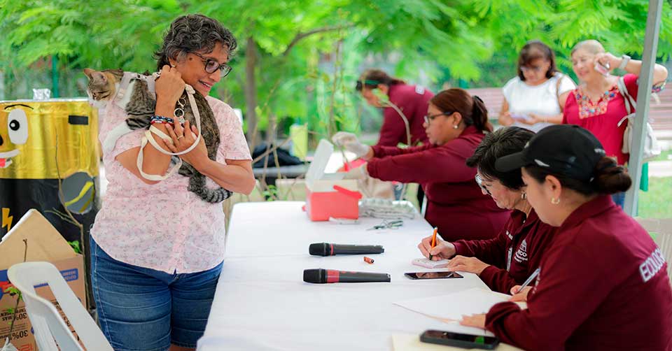 Tampico, Tamaulipas. - Cumpliendo su compromiso de promover el cuidado del medio ambiente y el bienestar animal, la Presidenta Municipal, Mónica Villarreal Anaya, encabezó este miércoles una nueva Jornada de Ecología y Protección Animal en la colonia Los Pinos, en la que se ofrecieron diversos servicios gratuitos.