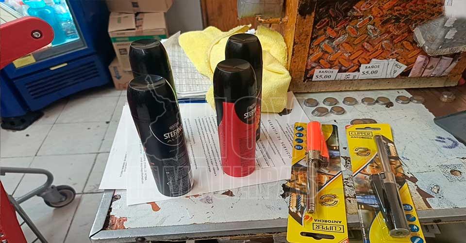 Entre los objetos que intentaba llevarse se encontraron cuatro desodorantes marca Stefano y tres encendedores.