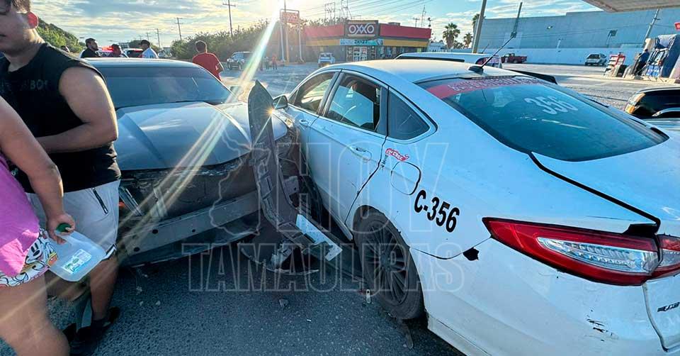 Fue impactado por un Chevrolet Camaro de color negro conducido por un joven, quien perdió el control tras la colisión e impactó a otro taxi de la base Estrella.