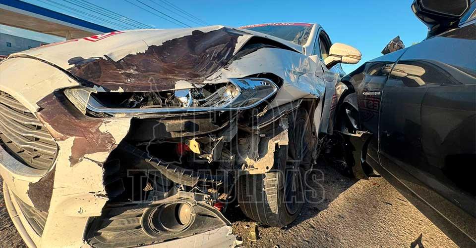 Matamoros, Tamaulipas. – Una aparatosa carambola vehicular se registró en el Sendero Nacional, al llegar al libramiento Emilio Portes Gil, dejando como saldo dos lesionados y cuantiosos daños materiales en al menos cuatro unidades.
