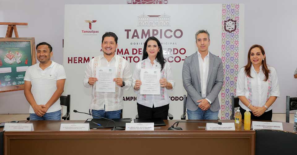 Tampico, Tamaulipas. - El convenio suscrito por los alcaldes Mónica Villarreal y Óscar Márquez impulsará proyectos conjuntos en materia cultural, turística y comercial, fortaleciendo la integración y proyección de la región huasteca