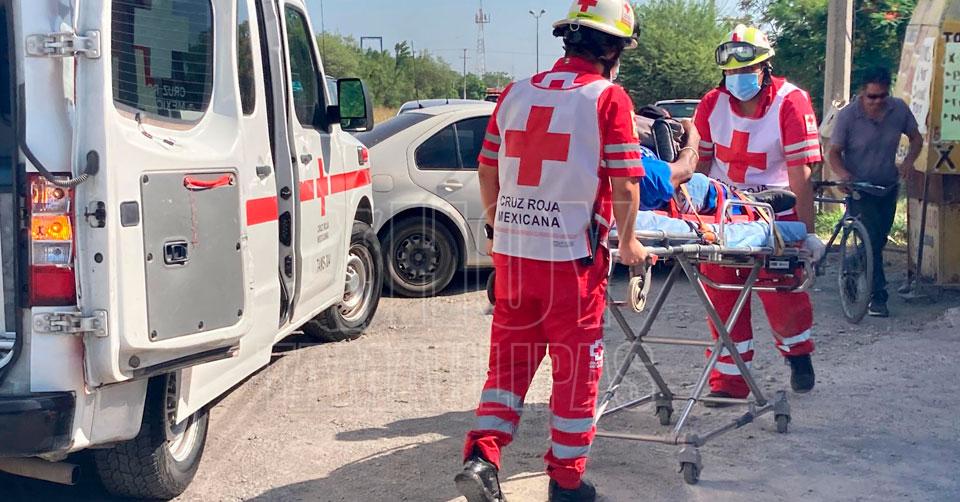 Paramédicos de la Cruz Roja acudieron al lugar para brindarle los primeros auxilios y trasladarlo a un hospital, debido a un fuerte dolor en una pierna.