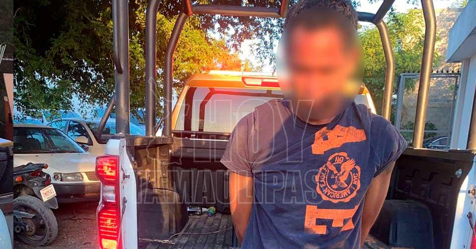 La detención ocurrió en el cruce de las calles 13 y 14 Aldama, número 414, cuando elementos de la Guardia Estatal patrullaban la zona y observaron al individuo que, al notar su presencia, intentó ingresar rápidamente a un domicilio.