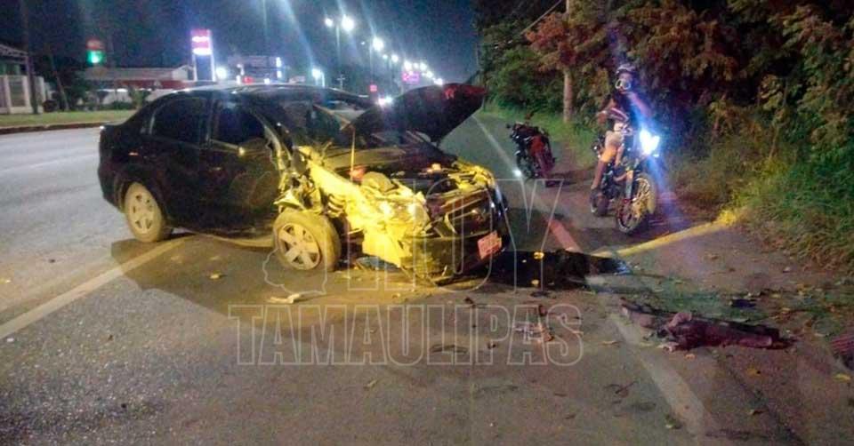 El fuerte accidente vial se registró esta madrugada en la Avenida de la Industria, a la altura de la empresa Petrocel del municipio de Altamira.