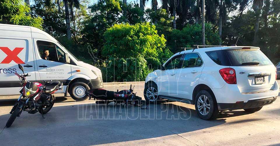 El percance vial se registró la tarde de este martes sobre la transitada avenida Rivera de Champayán, frente a las instalaciones de la zona militar de Tancol, en el municipio de Tampico.
