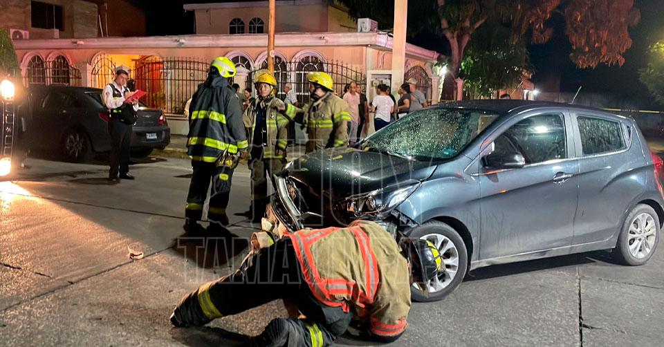 Ciudad Madero, Tamaulipas. – Un aparatoso choque y volcadura entre dos automóviles se registró la noche de este miércoles en transitado cruce de Ciudad Madero, en donde según los primeros reportes uno de los involucrados omitió una señal fija de alto.