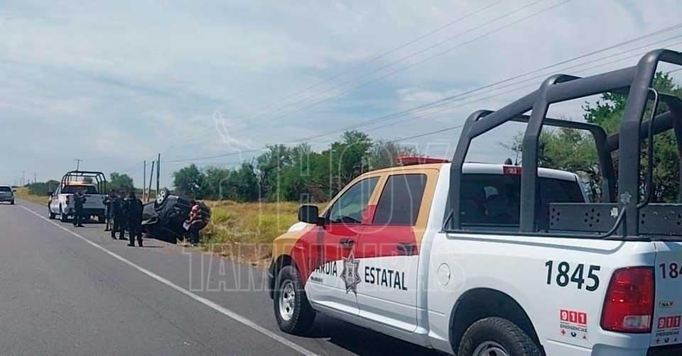 Güémez, Tamaulipas. - Una persona resultó lesionada tras la volcadura de un vehículo en el kilómetro 33 de la Carretera Federal 85, tramo Monterrey-Victoria, a la altura de la gasolinera Plan de Ayala en Güémez.