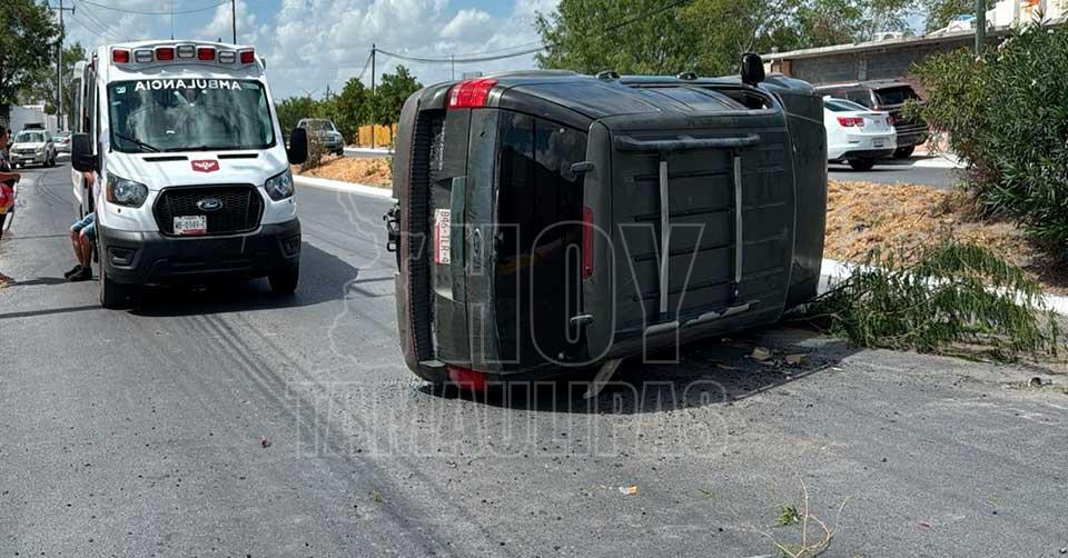 Tres lesionados tras choque y volcadura en el fraccionamiento Bugambilias de Reynosa