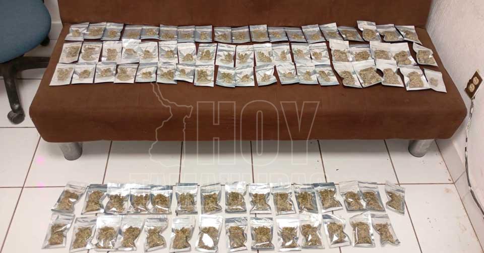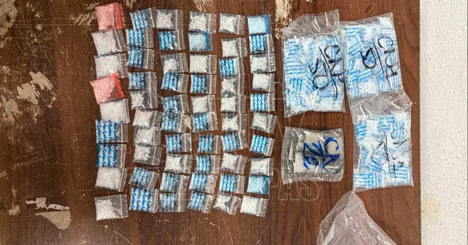 En la revisión, se localizaron 229 dosis de cristal, 86 de marihuana, 17 de piedra y 26 de cocaína, además de más de 38 mil pesos en efectivo.