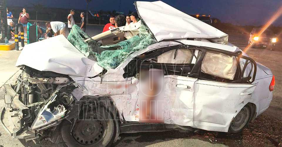 Ciudad Victoria, Tamaulipas. – Una menor de aproximadamente cuatro años y un hombre adulto murieron la noche de este domingo en un choque entre un automóvil Nissan Versa blanco y un tráiler.