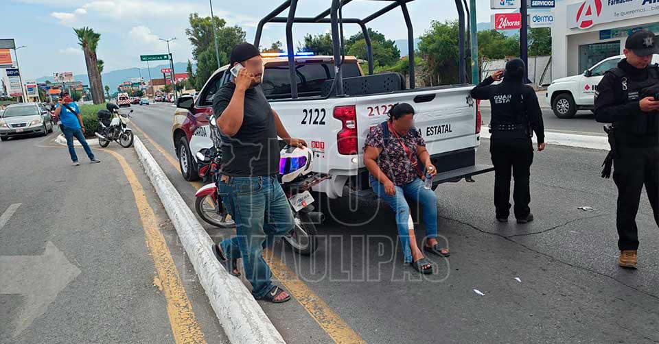 Pareja de motociclistas resulta lesionada tras ser embestida por automóvil en Ciudad Victoria