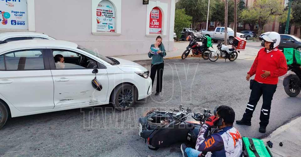 Repartidor de aplicación resulta lesionado tras ser derribado por auto en Ciudad Victoria