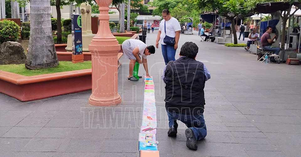 Tampico, Tamaulipas. - Con la finalidad de seguir impulsando a las familias para que sus hijos continúen con sus estudios, personal directivo y alumnos de la Unidad Tampico del Colegio Nacional de Educación Profesional Técnica (Conalep) realizaron nuevamente la labor denominada Kilómetro por la Educación en la Plaza de Armas.