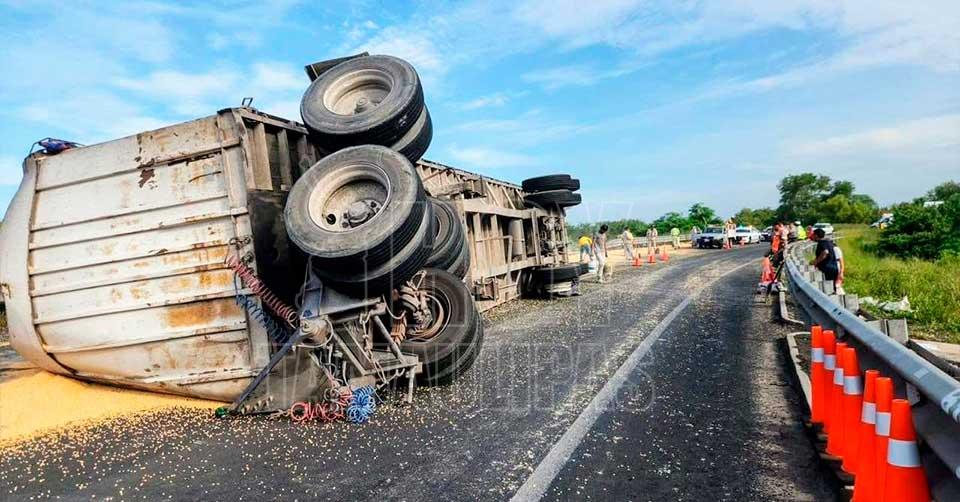 La problemática causó crisis porque desde la mañana no se habían podido levantar las 30 toneladas de maíz que quedaron regadas en el pavimento en un tramo cercano a la Casa de la Naturaleza de Tampico, ni la caja que quedó recostada, siendo la segunda de un doble remolque.