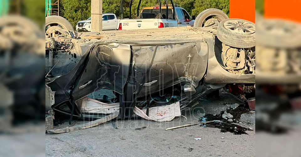 De acuerdo con los primeros reportes, el vehículo, una camioneta Nissan Kicks, circulaba en dirección poniente a oriente cuando, por causas aún no determinadas, el conductor perdió el control de la unidad, salió de la cinta asfáltica, dio varias volteretas y terminó impactándose contra la estructura perimetral de un negocio de materiales.