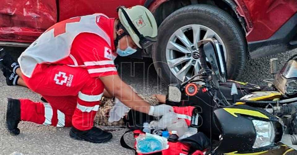 Dos estudiantes lesionados al chocar en su moto en El Mante