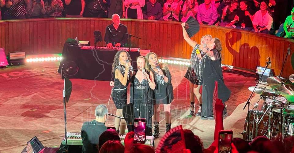 Isabel y Mayte Lascurain junto a Fernanda Meade, por Pandora; e Ilse y Mimí, por Flans, hicieron vibrar el recinto —también conocido como Palenque— que se llenó a su máxima capacidad. Cientos de asistentes corearon de principio a fin cada canción, creando un ambiente nostálgico y festivo.