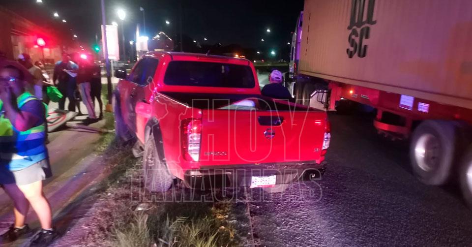 El accidente ocurrió en la lateral del puente conocido como "El Barquito", lugar al que se movilizaron en apoyo brigadistas de la base Bomberos Voluntarios de Tamaulipas y elementos de Tránsito y Vialidad de Altamira.