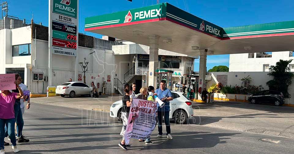 Tampico, Tamaulipas. - Al grito de "Justicia para Gabriela" y portando pancartas en las que se leía "Con los Niños No", familiares de la señora Gabriela N., e integrantes del colectivo feminista Mujer Manglar, se apostaron la tarde de este lunes bloqueando la Avenida Hidalgo a la altura del cruce con Ejército Mexicano.