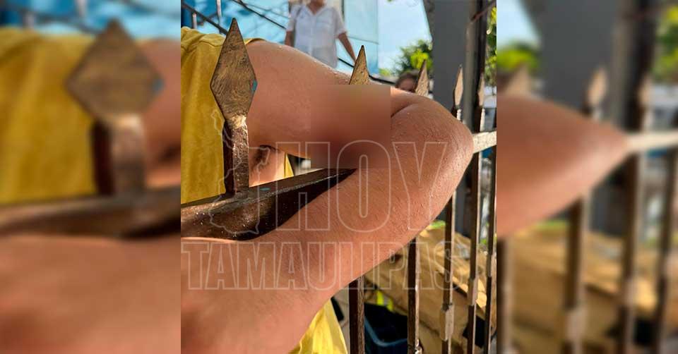 Tampico, Tamaulipas. - Un joven se resbaló accidentalmente de una escalera y cayó sobre la barda, en donde se encajó en el brazo izquierdo la punta metálica de una estructura de fierro que le atravesó la extremidad.