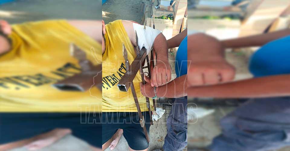 Joven cayó de una escalera en Tampico y se ensartó una punta metálica en el brazo