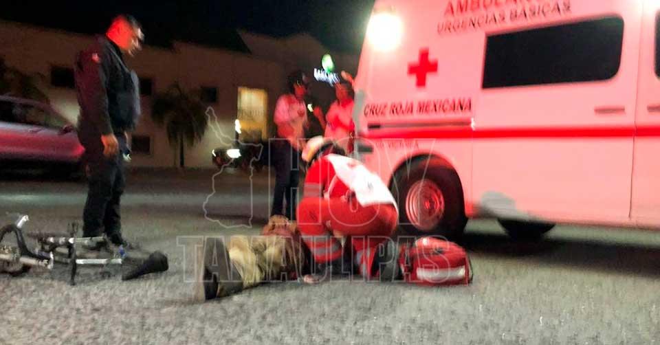 Ciudad Victoria, Tamaulipas.- Un ciclista de la tercera edad resultó lesionado tras ser impactado por un microbús de la ruta Coca Cola la noche de este lunes en la Avenida José Sulaimán, a la altura del cruce con la calle Del Sol en Ciudad Victoria.