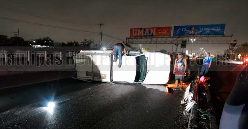 Taxista perdió la vida al volcar su vehículo en Tampico; tres lesionados