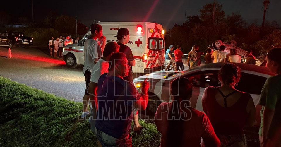 Taxista perdió la vida al volcar su vehículo en Tampico; tres lesionados