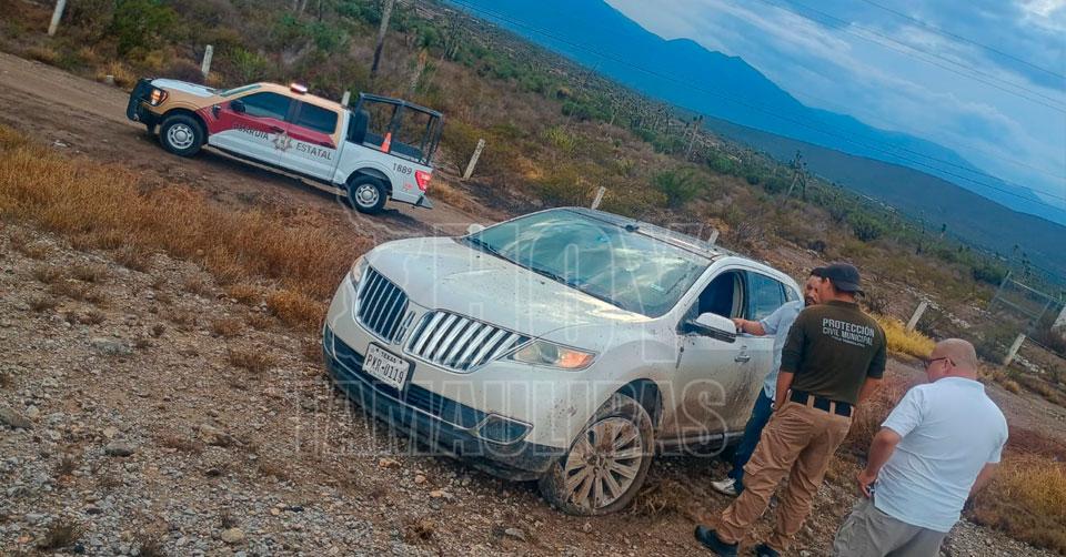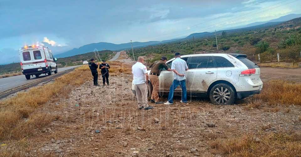 Elementos de Protección Civil de Tula acudieron al lugar tras recibir el reporte y encontraron un vehículo Lincoln blanco que derrapó debido a la ponchadura de un neumático.