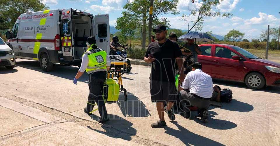 Ciudad Victoria, Tamaulipas. – Un accidente vehicular ocurrido en la colonia Linda Vista en Ciudad Victoria dejó a un padre y su hijo lesionados, luego de que la motocicleta en la que viajaban fuera impactada por un automóvil.