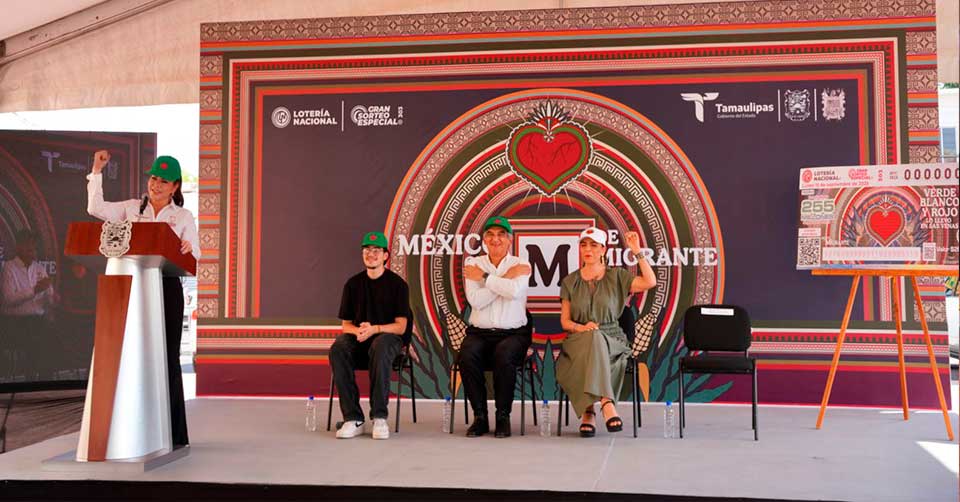 Nuevo Laredo, Tamaulipas. - En un emotivo acto realizado en Nuevo Laredo, símbolo del tránsito y vínculo con nuestros connacionales en el extranjero, se presentó el Gran Sorteo Especial No. 303 “México con M de Migrante”, una iniciativa de la Lotería Nacional que busca rendir homenaje y brindar apoyo directo a los mexicanos que residen en Estados Unidos.