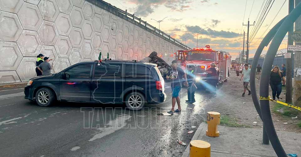 Reynosa, Tamaulipas. - El conductor de un tractocamión perdió la vida, luego de que su unidad cayó desde un puente vehicular en la carretera Río Bravo–Reynosa, a la altura del conocido puente LG, frente a la maquiladora Panasonic.