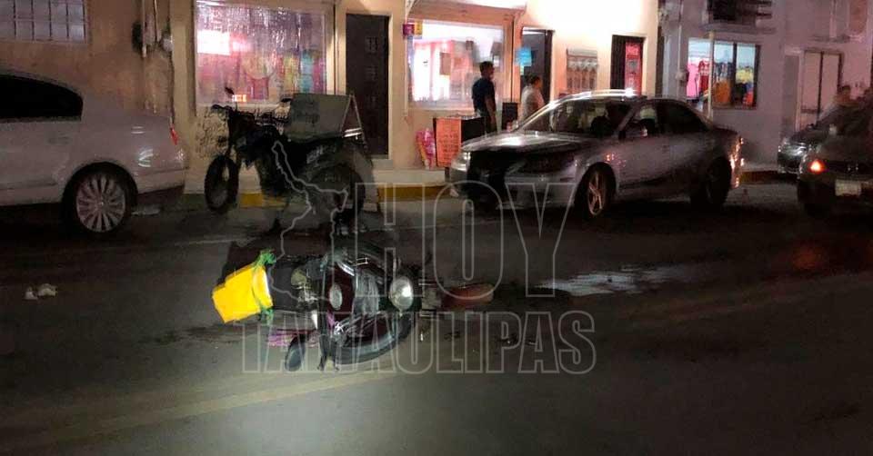 Ciudad Victoria, Tamaulipas. – Un motociclista repartidor resultó con lesiones de consideración la noche de este jueves, luego de ser embestido por una camioneta en el cruce de la calle 27 y Avenida Central, en la colonia Lázaro Cárdenas en Ciudad Victoria.
