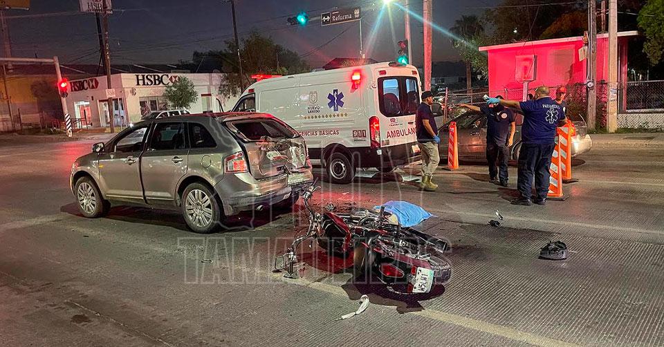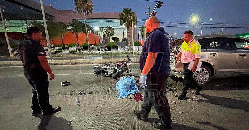 Nuevo Laredo, Tamaulipas.— Un trágico accidente cobró la vida de un joven motociclista y dejó a su acompañante lesionado, luego de que se estrellaron a alta velocidad contra una camioneta cuyo chofer esperaba el cambio de luz en un semáforo de la Avenida Reforma de Nuevo Laredo.