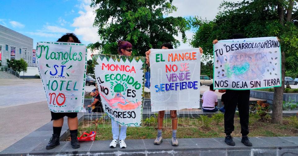 “El mangle no se vende": protestan ambientalistas en el informe de Mónica Villarreal