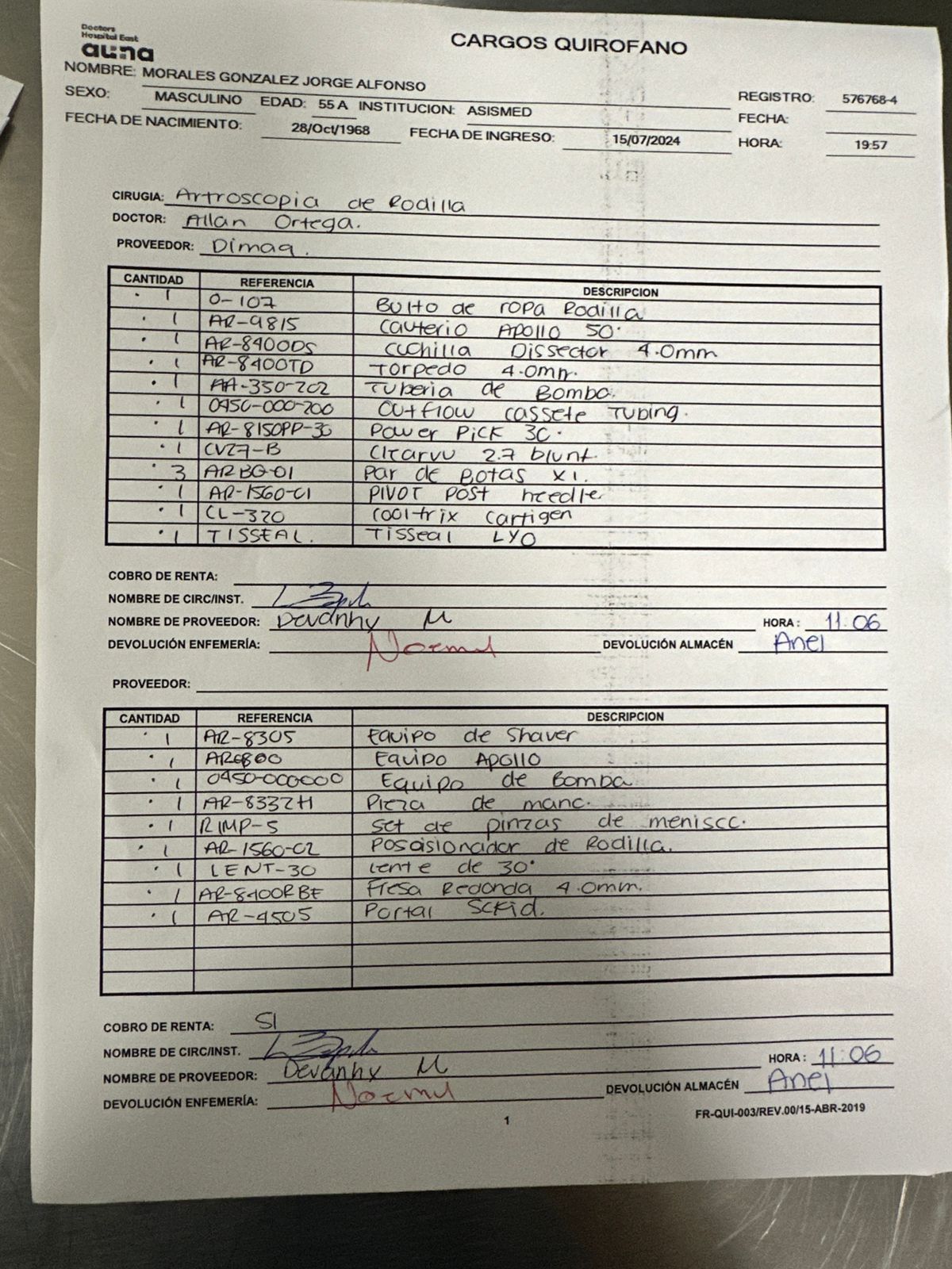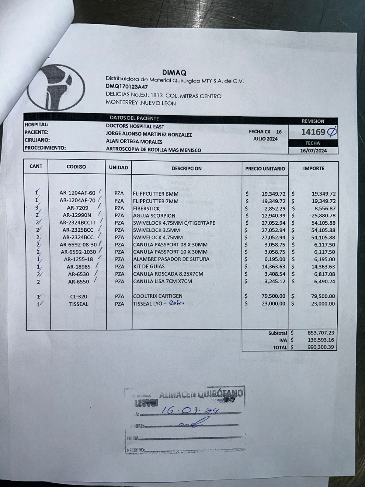 Uno de los casos ocurrió el 16 de julio de 2024 en el Doctor Hospital East de Monterrey, durante una artroscopia de rodilla al paciente Jorge Alonso Martínez González. En lugar del insumo especializado Cooltrix Cartigen, con valor de $79,500, se habría utilizado Depo-Medrol, que cuesta apenas $266. Además, se facturó el hemostático Tisseel Lyo por $23,000, aunque no fue aplicado.