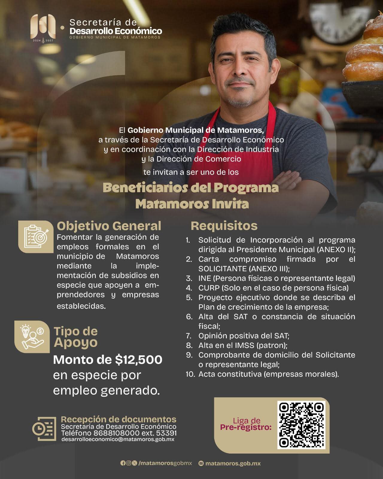 Matamoros, Tamaulipas. - El gobierno que preside el alcalde Alberto Granados, invita a emprendedores y empresarios a participar en el programa “Matamoros Invita”, diseñado para impulsar el crecimiento de los negocios locales.