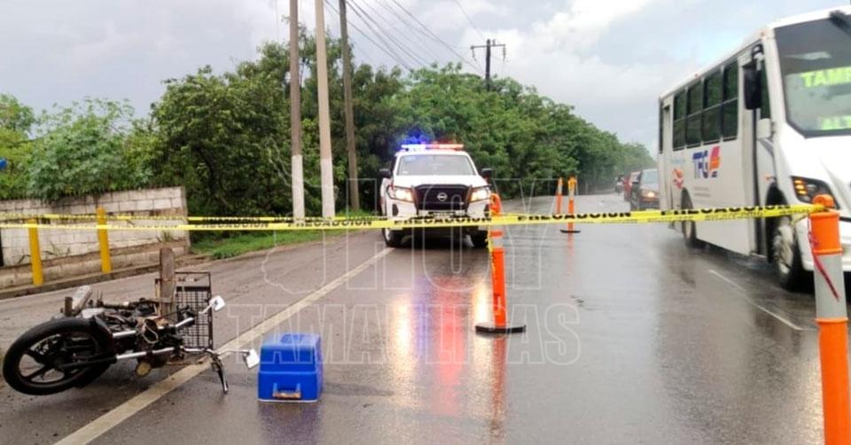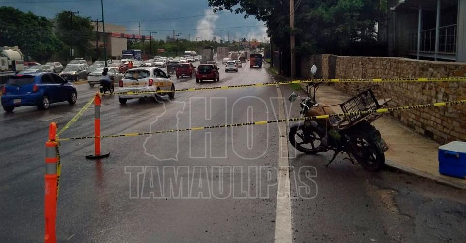 De acuerdo a la información recabada, el tripulante de la moto de unos 30 años de edad se desplazaba rumbo a Tampico, cuando por lo mojado del pavimento y la falta de pericia al conducir derrapó, proyectando su humanidad contra el pavimento donde quedó tendido.