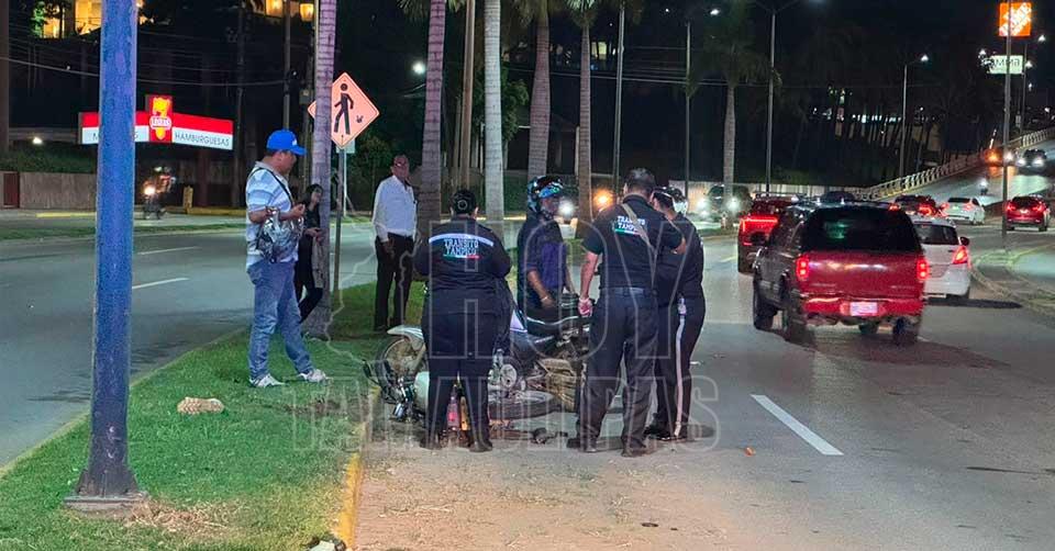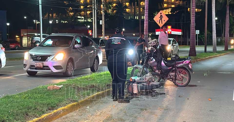 Tampico, Tamaulipas.- Con múltiples lesiones resultó un motociclista que la noche de este jueves perdió el control de su unidad y derrapó frente al complejo Cinépolis, en la prolongación de la Avenida Hidalgo, una de las zonas de mayor tránsito en Tampico.