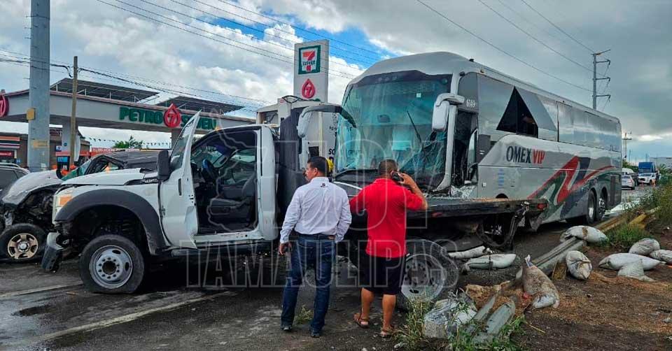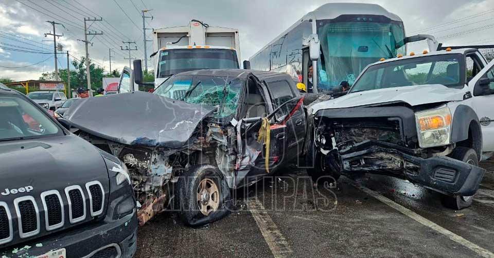 Entre los vehículos involucrados se encuentran una camioneta Ford Lobo, una unidad Jeep y un autobús de pasajeros que provenía de Monterrey con destino a McAllen, Texas. También resultó afectado un camión recolector de basura.