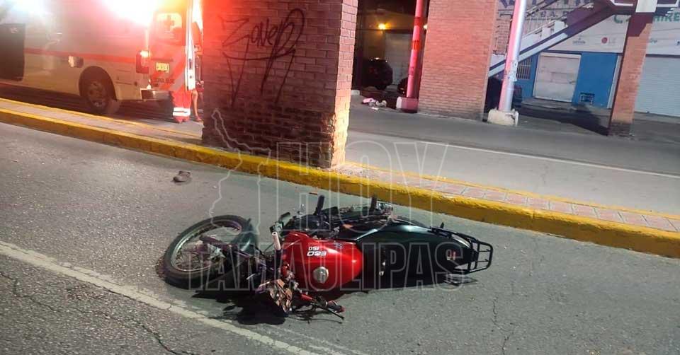 Tampico, Tamaulipas. - Un joven de unos 20 años de edad falleció esta madrugada al impactar la motocicleta que tripulaba contra un poste y puente peatonal en la Avenida Hidalgo, frente a la Secundaria número 1 de Tampico; otro muchacho resultó herido.