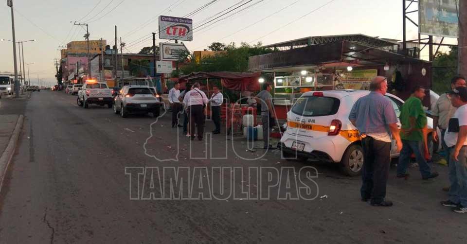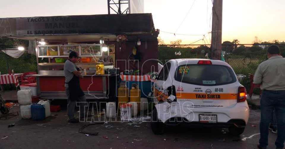 Taxi fue impactado por automóvil y proyectado contra puesto de tortas en Tampico