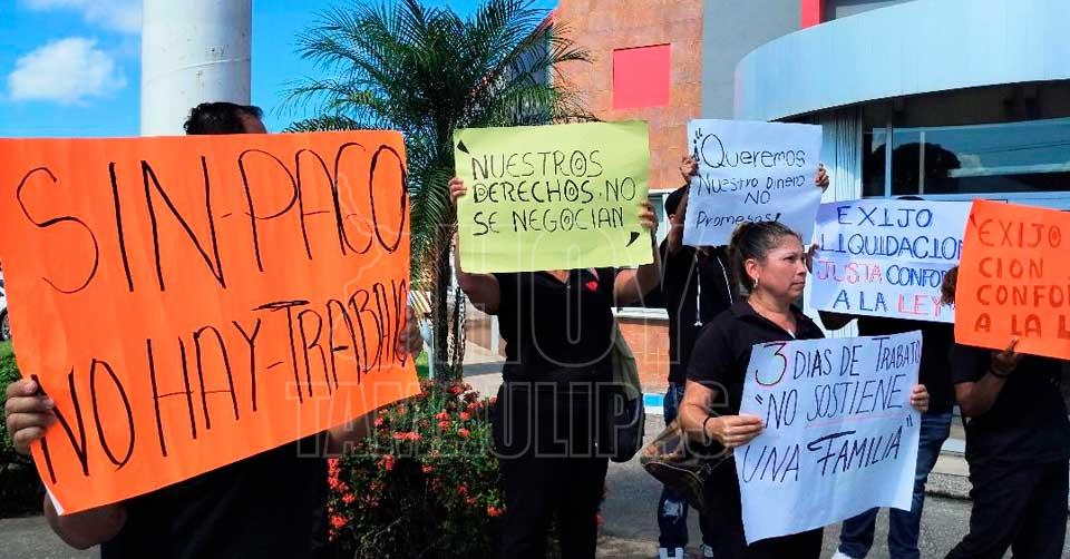 “Estamos manifestándonos de manera pacífica, pero exigimos nuestros derechos: el pago de indemnizaciones y prestaciones que se nos adeudan. No tenemos respuesta clara ni concisa del corporativo”, dijo.