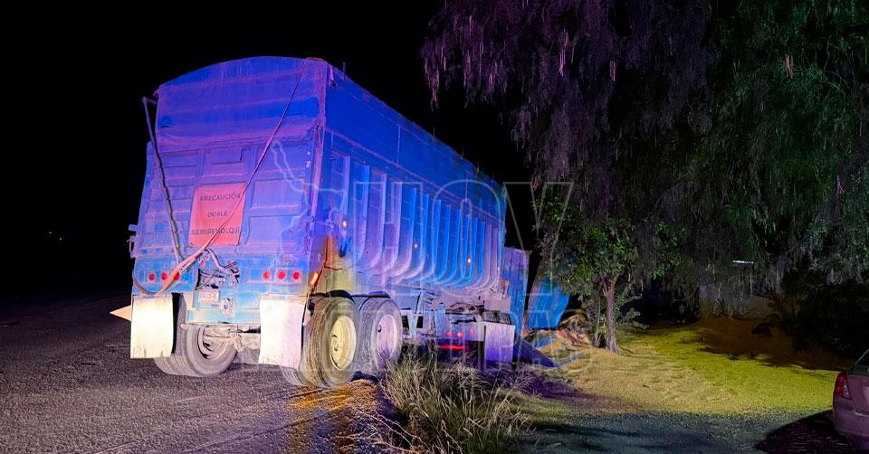 Vuelca tractocamión con 70 toneladas de maíz en la carretera Ribereña