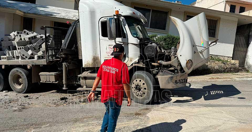 Tráiler cargado de blocks pierde frenos y termina incrustado en vivienda de Tampico