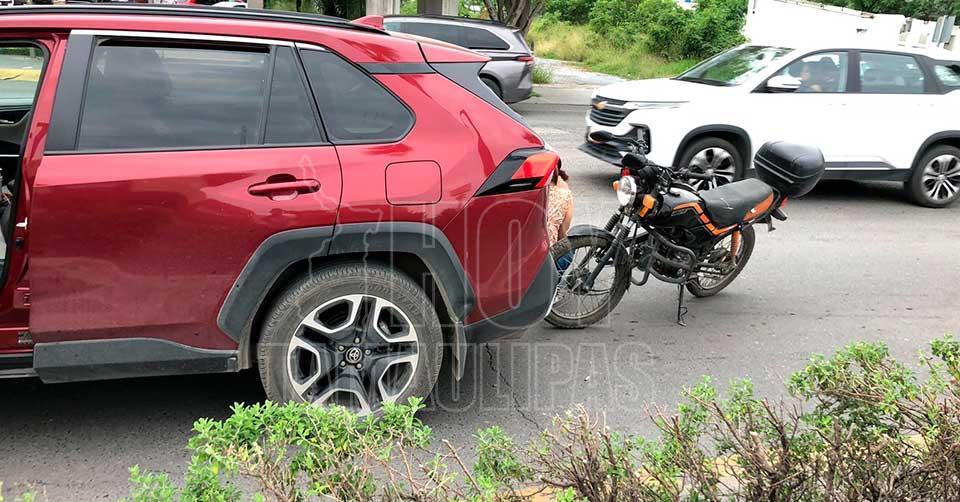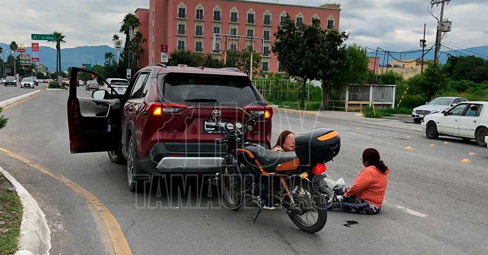 Ciudad Victoria, Tamaulipas. - Una mujer que circulaba en motocicleta resultó lesionada, luego de chocar por alcance contra una camioneta en la Avenida Tamaulipas y calle Zacatecas.