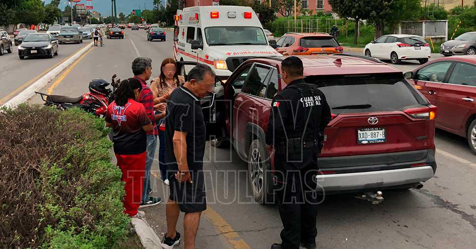 Accidente en Avenida Tamaulipas de Victoria deja a mujer con probable fractura de muñeca