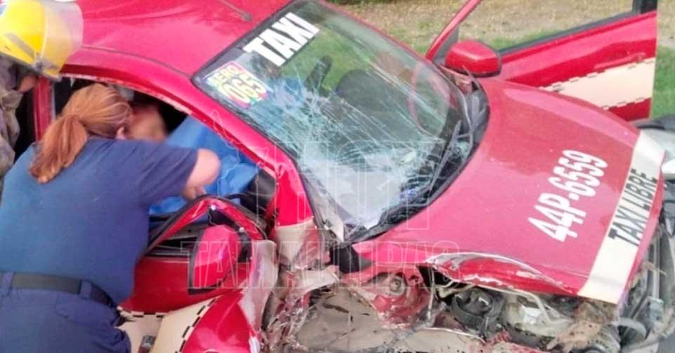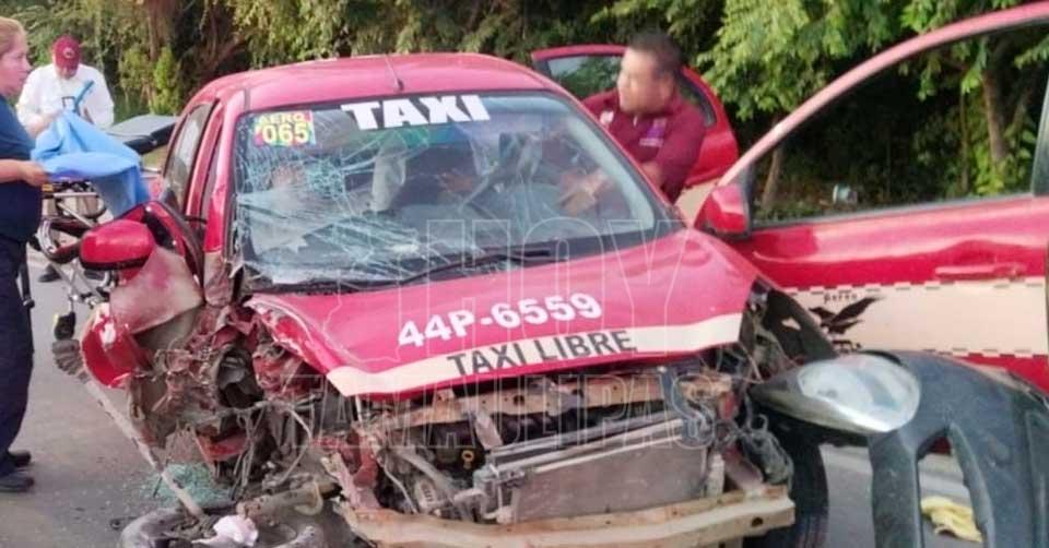 Mujer queda atrapada tras choque de taxi en Altamira; conductor dormitó al volante